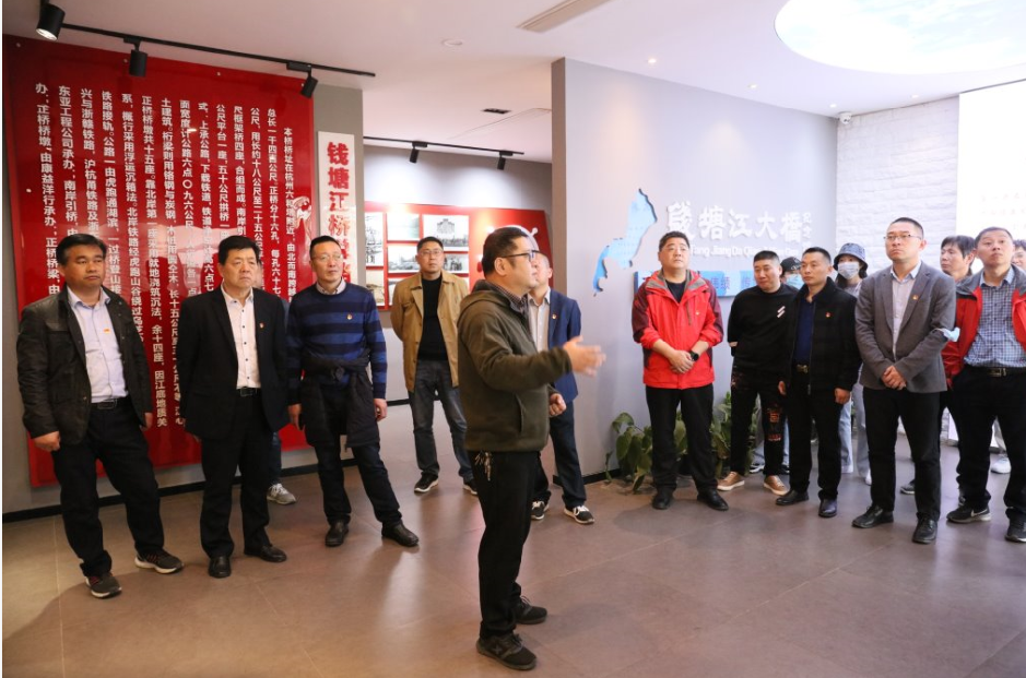 活動當日,公司全體黨員乘坐大巴前往錢塘江大橋紀念館參觀。紀念館管理員對于錢塘橋一橋的建造歷史以及一橋的主持建造者茅以升先生的一生的娓娓講述,讓每位黨員了解到了這座飽經風霜的橋梁背后的種種事跡。
