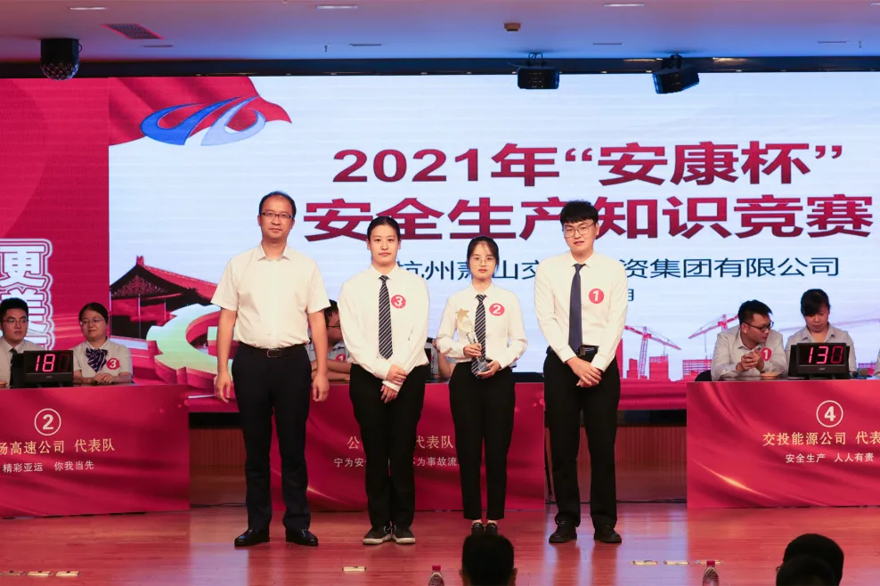 集團2021年“安康杯”知識競賽活動分預賽、決賽兩個環節,采用“理論筆試+現場競答”形式進行。共有12支隊伍參加競賽。經過9月18日預賽晉級選拔,交投出租車公司、機場高速公司、公交公司、交投能源公司、浦陽江開發公司、長運公司六支代表隊順利進入決賽,角逐前三名。