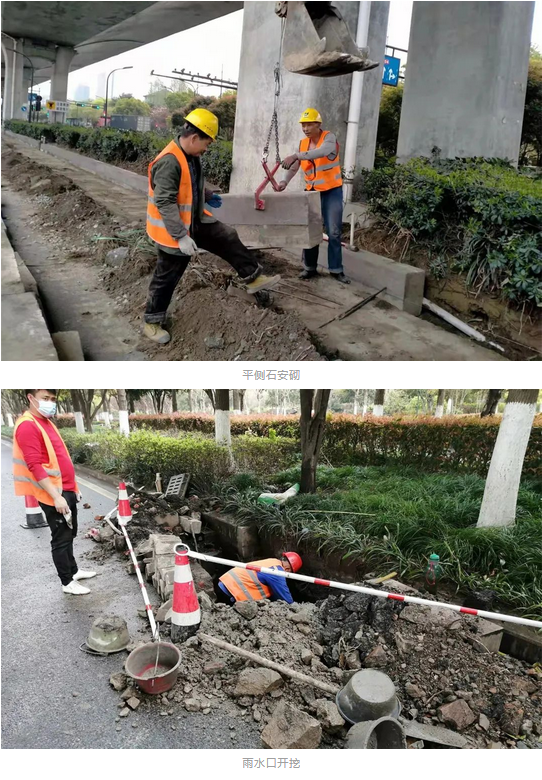 平側(cè)石拆除和安砌、人行道拆除已全部完成;人行道鋪設(shè)1195平方米,占總量的10.5%;雨水口新增全部完成。