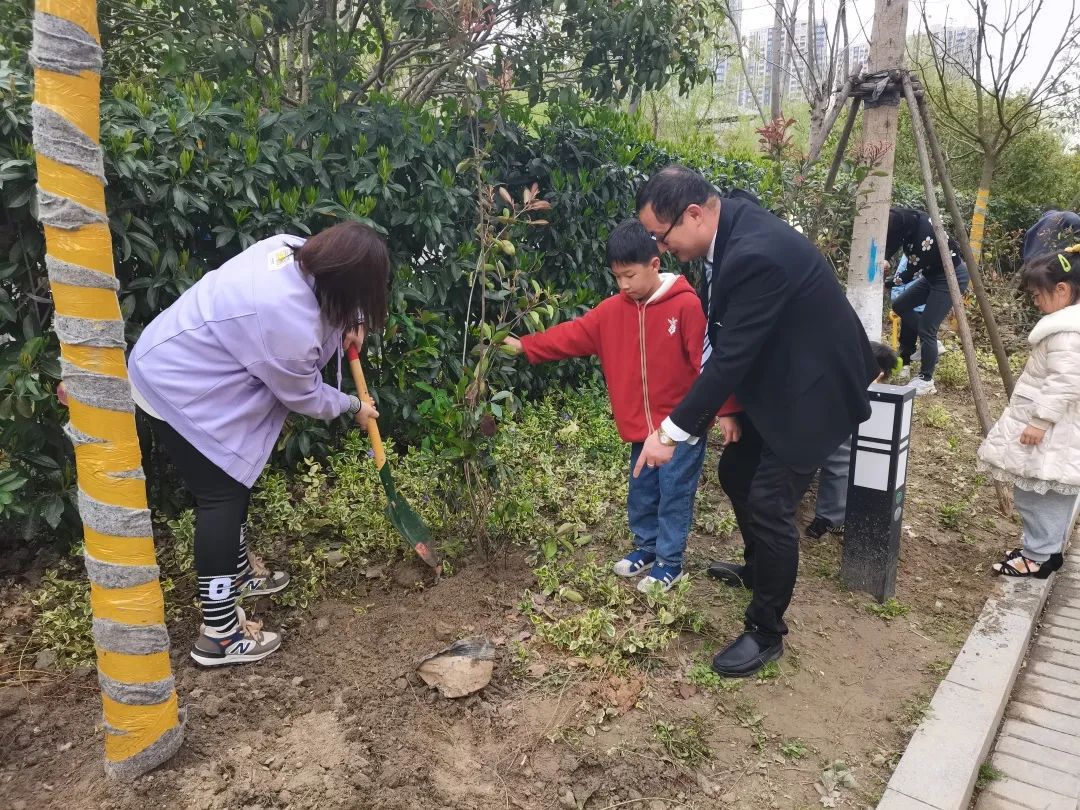 物業(yè)工作人員也向今天參與植樹活動的小朋友們,介紹植樹節(jié)的意義,帶領他們認識樹苗,學習種植的方法,接著挖土、播種、澆水,大家忙得不亦樂乎。本次活動也讓孩子們在實際操作和親身體驗中感受到了種植的快樂,并為小區(qū)增添了一抹綠色,同時激發(fā)了孩子們愛護環(huán)境、植樹增綠的情感。