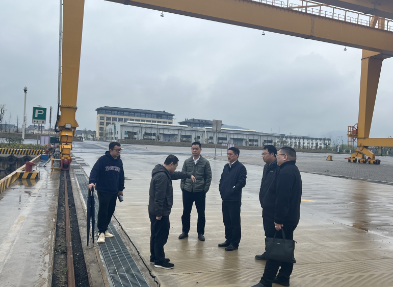 會(huì)后,參會(huì)人員一同前往現(xiàn)場(chǎng),實(shí)地考察義橋作業(yè)區(qū)和港區(qū)疏港道路。