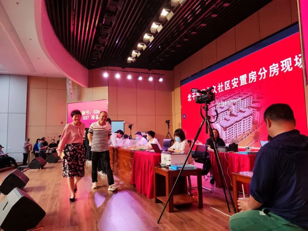 分房現(xiàn)場井然有序,安置戶們按照之前抽取的順序號,依次上臺抽取新房并簽字確認(rèn)。