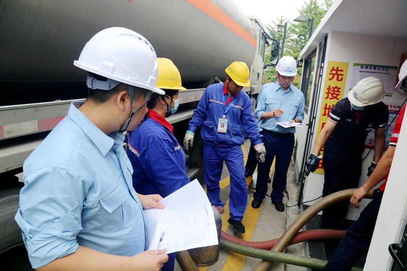 隨后,在接卸油現場,組織全體參訓人員進行油罐車接卸油實操考試,由總經理助理李新宇及行政有關部室人員組成的評委組進行現場考核、打分,從而通過實操演練達到“理論學習指導實踐、實踐鞏固理論學習”的效果。
