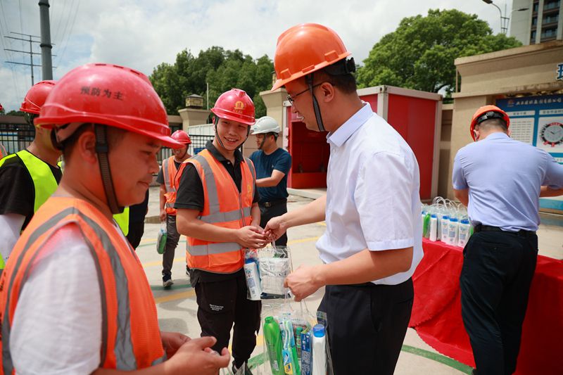 7月26日上午,蕭山地鐵投資公司開展“盛夏送清涼”活動(dòng),由集團(tuán)副總經(jīng)理、公司總經(jīng)理鐘波帶隊(duì)的慰問(wèn)組一行至雙橋安置房項(xiàng)目工地,慰問(wèn)烈日下的一線工人。集團(tuán)資產(chǎn)運(yùn)行部經(jīng)理趙軍、公司副總經(jīng)理蔣志良參加慰問(wèn)。