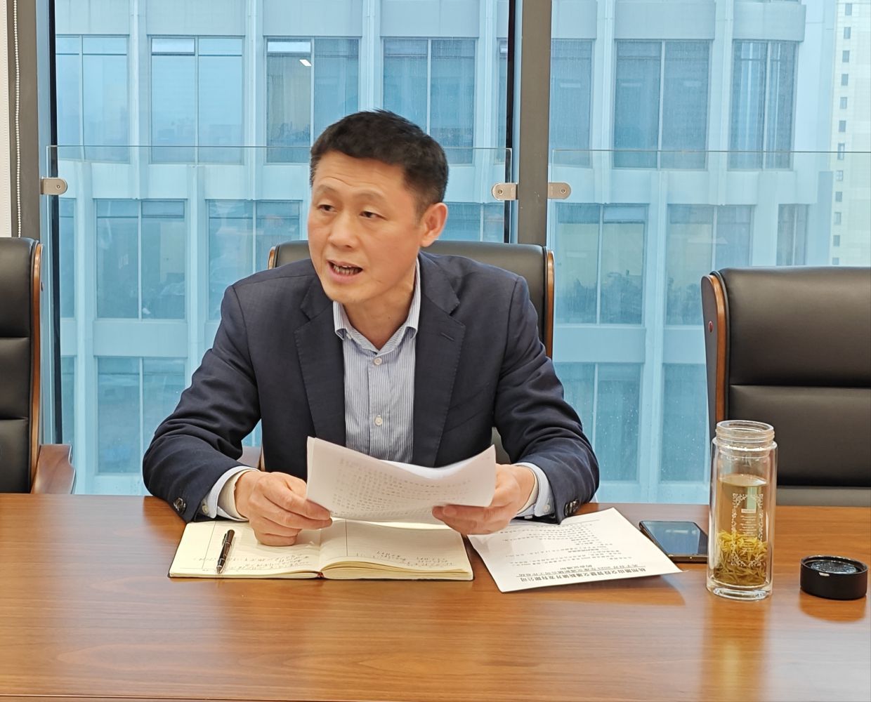 會(huì)議最后,集團(tuán)黨委委員、副總經(jīng)理、公司總經(jīng)理金文華對(duì)全體員工進(jìn)行講話。