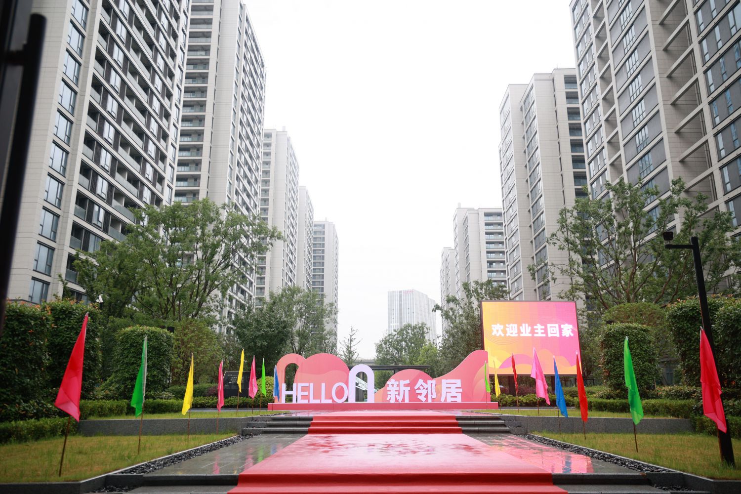 交房期間恰逢水鄉(xiāng)江南的梅雨季節(jié),但淅瀝瀝的雨也未能抵擋住人們拿房的熱情。每天早上9點不到,交房現(xiàn)場己是人聲鼎沸、笑語盈盈。“歡迎回家”的標語隨處可見,現(xiàn)場一片喜氣洋洋。