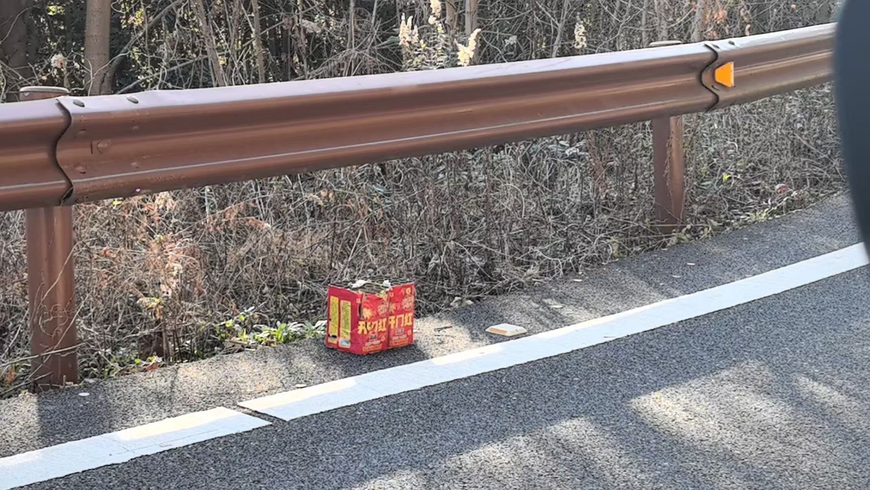 通過深度排查,發現在不遠處有煙花殘骸現蹤跡,養護隊于林道緩坡處發現有煙花爆竹紙質發射筒。養護隊及時將相關情況報告給上級領導并妥善處置。