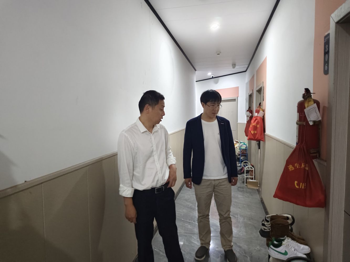 黨支部委員、副總經(jīng)理沈偉才帶隊(duì)檢查潘水服務(wù)用房。