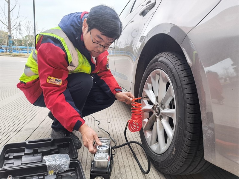 青年們化身“流動服務站”,主動引導車輛有序停靠、協助搬運重物、清潔場地衛生,還為顧客提供路線咨詢、輪胎充氣等暖心服務,用汗水換整潔,以行動遞溫情。