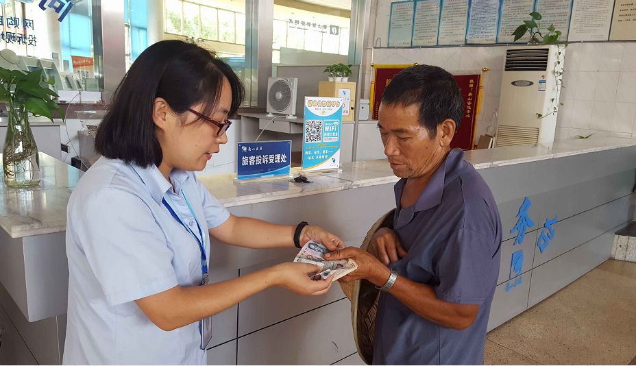 7月20日下午,一位大伯來到蕭山汽車總站服務臺求助,因沒有足夠的錢購買車票,希望車站能夠幫忙解決。得知此事后站長胡麗燕想到了愛心基金,在與大伯核實了相關情況后,站務員顧佳祺取出愛心基金幫大伯墊付了部分車票費用,讓這位大伯順利坐上了回家的車。今天下午,那位大伯再次來到了總站服務臺,而這次他是來歸還愛心箱墊付的車票錢的,他向工作人員一再道謝說:“如果沒有愛心箱的錢他就回不了家了。”