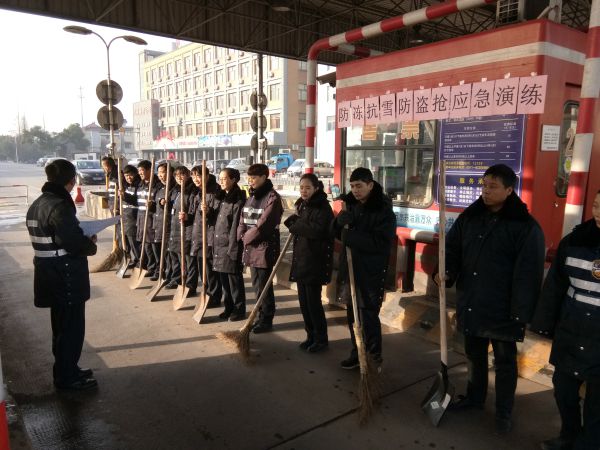 演練主題是防凍抗雪及防盜搶,防盜搶主要鍛煉員工發現現金和物品被盜后采取的措施及遇到被搶劫時的應急處置能力,防凍抗雪主要是根據現場實際情況,鍛煉員工在大雪冰凍天氣的應急處置能力。