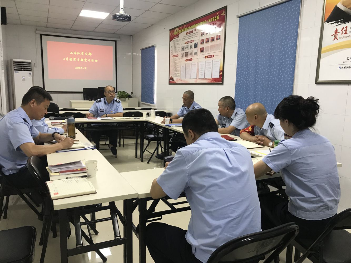 活動突出黨建引領,面向工作實際,具體抓好以下幾方面工作:一是確定黨員干部聯系服務職工群眾的最終名單及實施步驟;二是交叉互查黨員干部“三本賬”(工作日志、情親賬本、廉政賬本);三是傳達學習《關于開展紀念建黨97周年系列活動的通知》《關于開展“作風建設提升月”活動的通知》等文件精神;四是觀看“廉潔好家風”主題教育片;五是開展“黨員政治生日”“五個一”活動,舉行黨員重溫入黨宣誓儀式;六是開展紀律知識測試;七是對入黨積極分子E平臺在線學習、區改革開放40周年征文活動、鴻達路停保基地植樹活動等工作進行宣傳動員。同時,行政一、二支部還前往休博園社區聯合開展黨員服務進社區活動;行政四支部到蒙山路運河河道周邊進行環境美化志愿服務;六車隊支部則開展了職工家屬座談會暨“好家風,好家規”分享會。