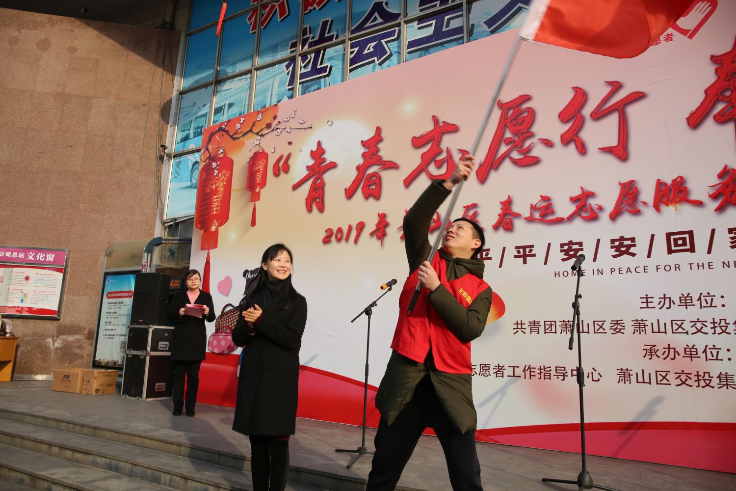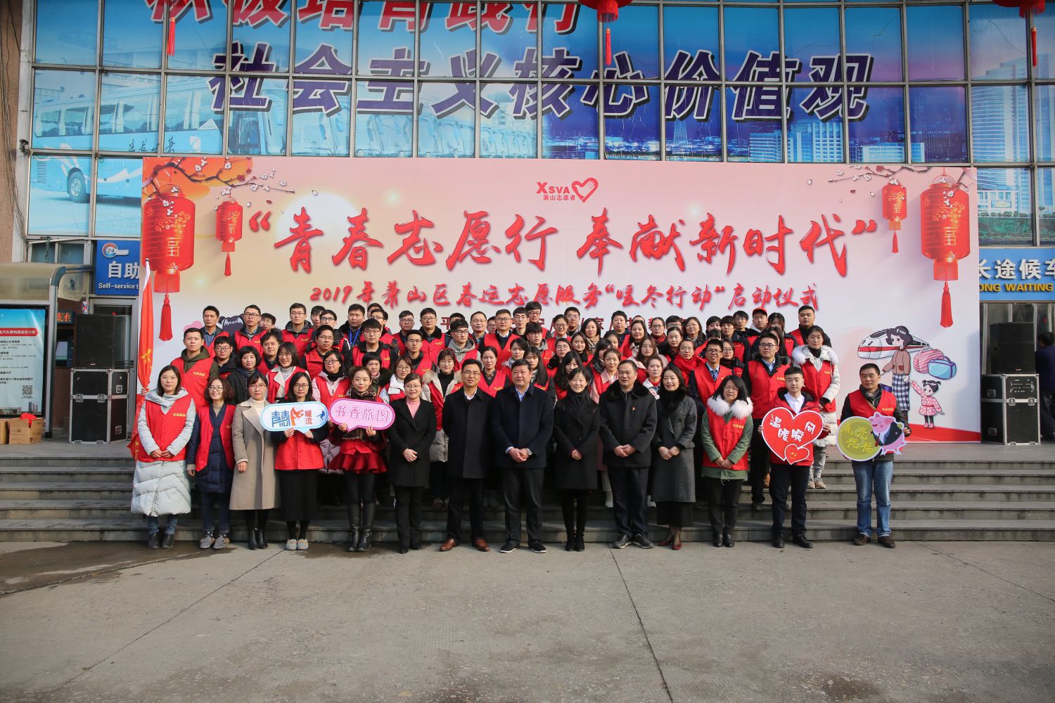 為弘揚“奉獻、友愛、互助、進步”的志愿精神,助力春運工作平安、有序開展,進一步發(fā)揮青年志愿者在春運工作中的重要作用,1月21日上午,團區(qū)委、區(qū)交通運輸局團工委、區(qū)交投集團團委聯(lián)合在蕭山汽車站舉行“青春志愿行·奉獻新時代”2019年蕭山區(qū)春運志愿者服務“暖冬行動”啟動儀式。團區(qū)委書記楊芳,集團黨委書記、董事長祝關翔,團區(qū)委副書記孔美華,集團紀委書記郭維濤出席啟動儀式,蕭山交投集團志愿服務總隊、區(qū)交通運輸局志愿服務總隊、區(qū)青年書法家協(xié)會共80多名志愿者參加儀式。