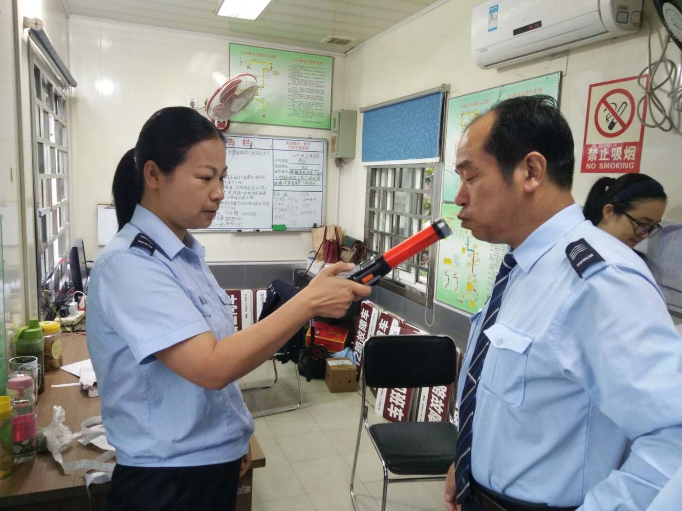 開車不喝酒,酒后不開車!炎炎夏日已經來臨,下班后約上三五好友聚在一起吃點夜宵喝點酒已經成了人們的一種生活常態,但對城市公共交通安全衛士——公交司機來說,這件事確是萬萬不可的。為給乘客營造安全的出行環境,確保乘客安全出行,提高司機安全行車意識,5月15日-19日第三屆中國國際茶業博覽會舉行期間,蕭山公交始終把安全工作擺在首要位置,多措并舉加大公交駕駛員崗前酒精測試監督和抽查力度:各車隊組織安全管理人員每天清晨在各中心站點調度室內對所屬司機進行現場呼氣式酒精含量測試,,嚴查“隔夜酒”,謹防第二天“宿酒”現象,避免駕駛員疲勞駕駛,從源頭上為公交安全行車再添一道防線,保障乘客安全出行。